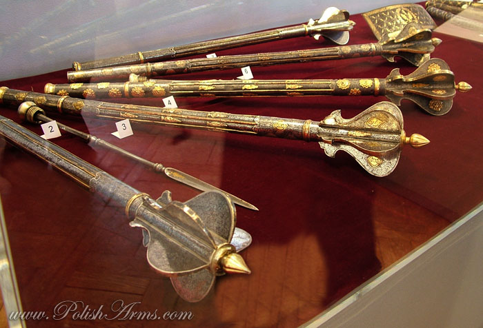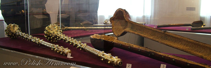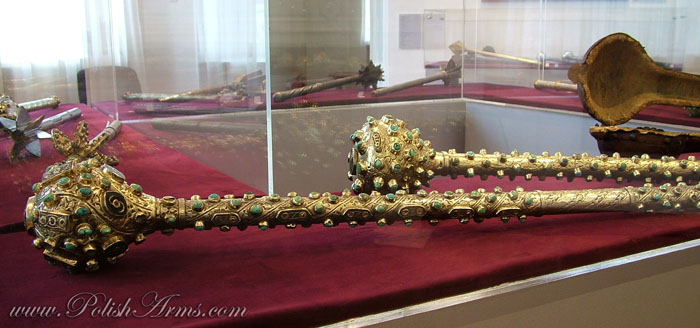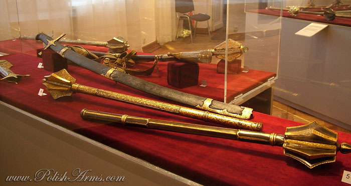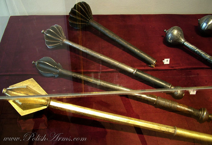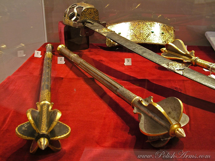 Bulawa-mace after hetman Stanislaw Jan Jablonowski, Transylvania, made by Andras Helfer from Kolozsvar (ca. 1582-1611). 2. Bulawa-mace after Timofiej Cieciura, Transylvania, workshops near to Andras Helfer, 16th-17th c. It was given to the Jasnagora monastery by the king Jan Kazimierz in 1661;