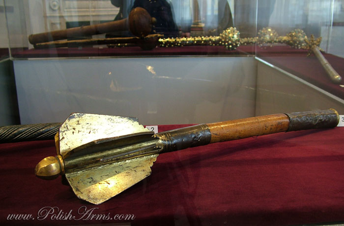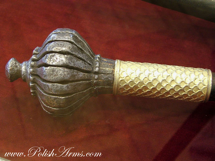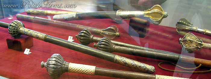 The first type is a bulawa-mace, which you can call in English also a baton, seen on the picture above, with round or oval head on the helve. These were never used in battle, always were of high artistic values, and were worn by hetmans, the highest ranked persons in the Polish army.